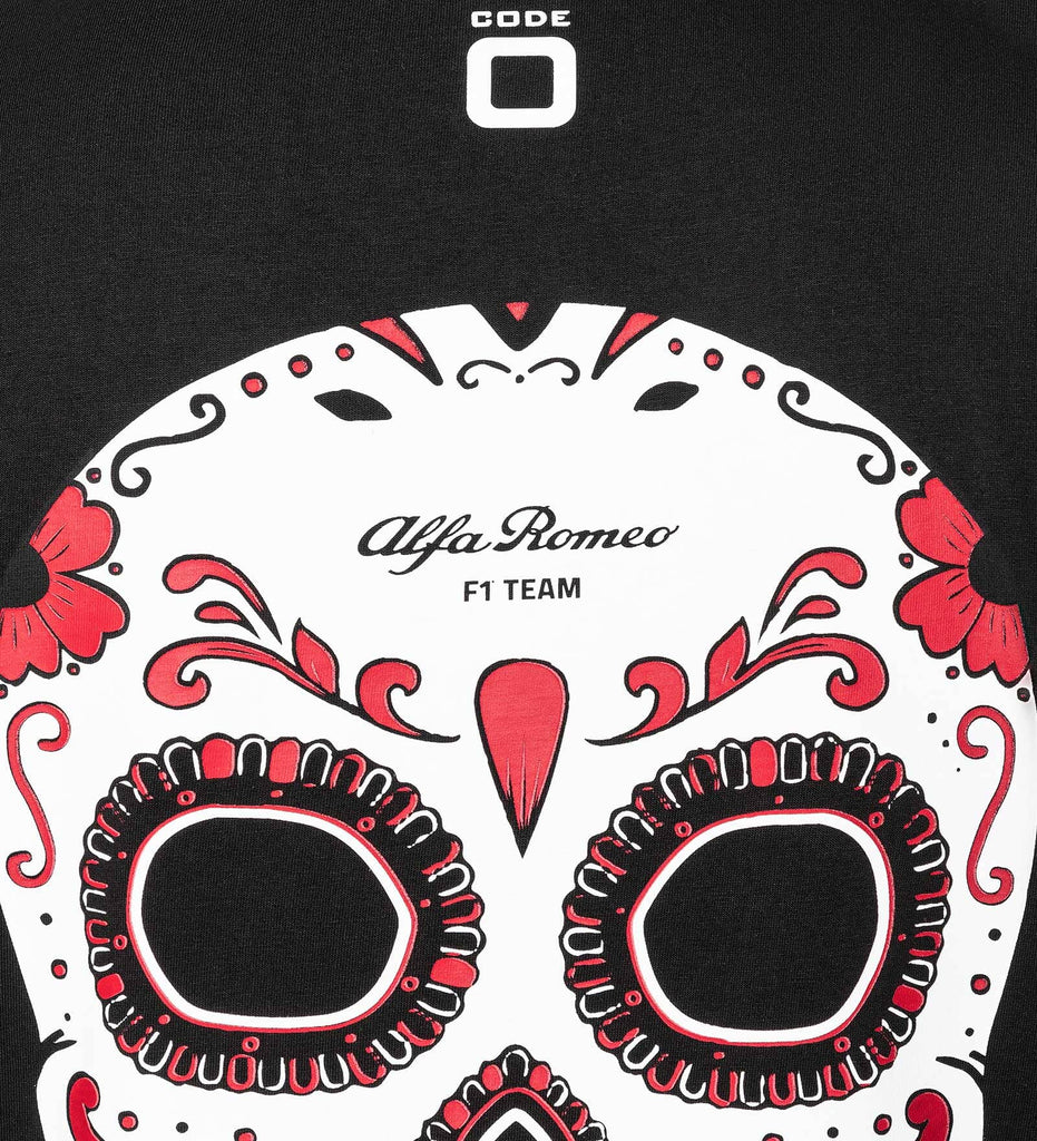 Presenting the Mexico T-Shirt from the Alfa Romeo F1 Fanwear Collection - a limited edition item that celebrates the fusion of Mexican heritage and Formula 1 excitement. Crafted with meticulous attention to detail, this t-shirt embodies your love for speed, style, and innovation. The Mexico "skull" print on the chest pocket and the eye-catching back print symbolize the essence of Mexican flair.