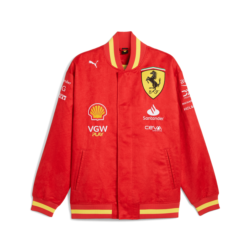 - Experience the thrill and passion of the Scuderia Ferrari F1 team with our 2024 Team Replica Varsity Jacket in fiery red! This high-quality jacket is a replica of the one worn by the team, providing you with an authentic and stylish way to show your support. From the track to the streets, this jacket will make you feel like a part of the team. Get yours today and feel the adrenaline of the race!