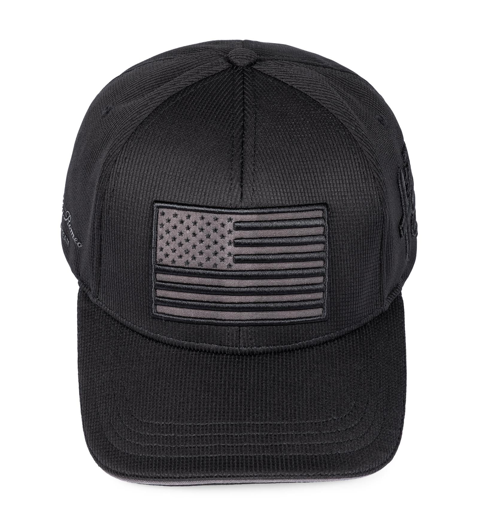 - USA flag black on black embroidered on the front