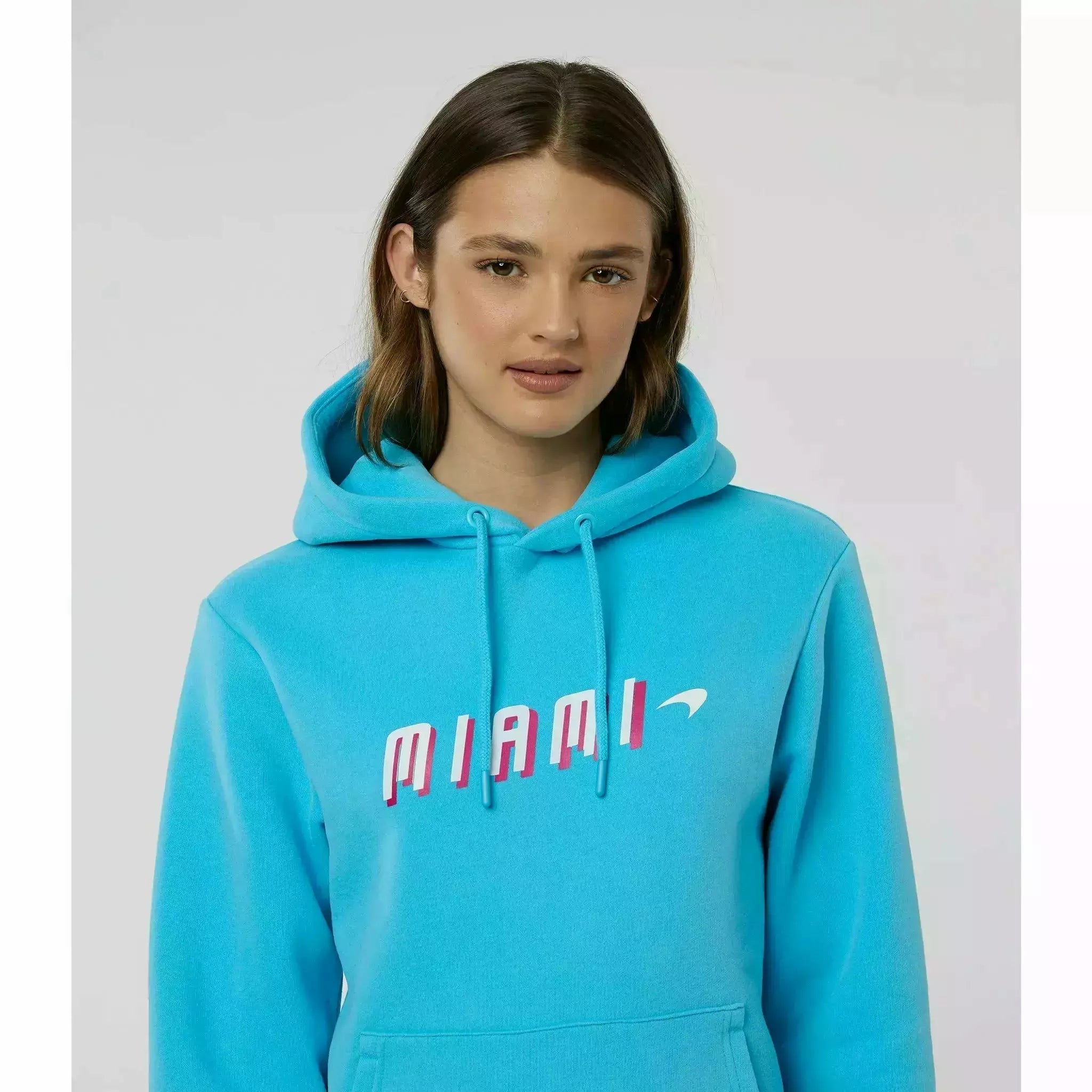 Our special edition Miami Neon Graphic Hoodie is a great extra layer for any McLaren fan. With a design that is inspired by the bright lights of The Magic City. Crafted from an ultra-soft fleece fabric that puts comfort and ease of movement first. With Miami lettering on the chest and a large neon Speedmark on the reverse.